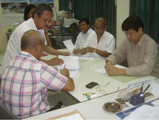 The CITY GOVERNMENT OF TAGUM awarded to INFOMAN through a public bidding process, a P14-Million project for the supply, delivery and installation of LGU Software and Hardware Systems. Signing the MOA in a simple ceremony last January 28, 2008 are Honorable Mayor Rey T. Uy (seated left), Tagum City, Davao del Norte and Danilo A. Yao (seated right), President, Information Managers, Inc. Also in photo witnessing the contract signing is Edgar de Guzman (seated second from right), Tagum City Treasurer. |